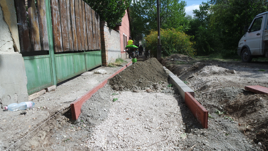 Képeink a Felső utcában készültek. Mint látható, a régi járdát teljesen elbontották, az új pedig másfél méter széles lesz.