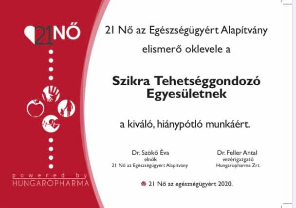 Négy másik programmal együtt a Szikra Tehetséggondozó Egyesület is megkapja a 21 Nő az Egészségügyért Alapítvány védjegyét – számolt be róla közösségi oldalán az egyesület.
