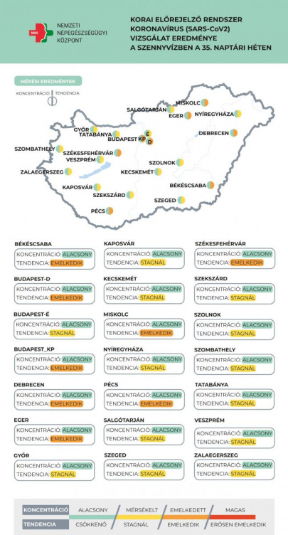 A méréseket a Nemzeti Népegészségügyi Központ (NNK) végzi.A szennyvízben kimutatható koncentrációnövekedés 4-10 nappal előzi meg a tünetes megbetegedések számának növekedését - írja a koronavirus.gov.hu.