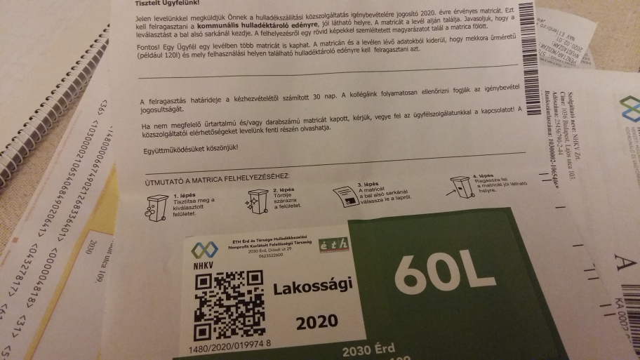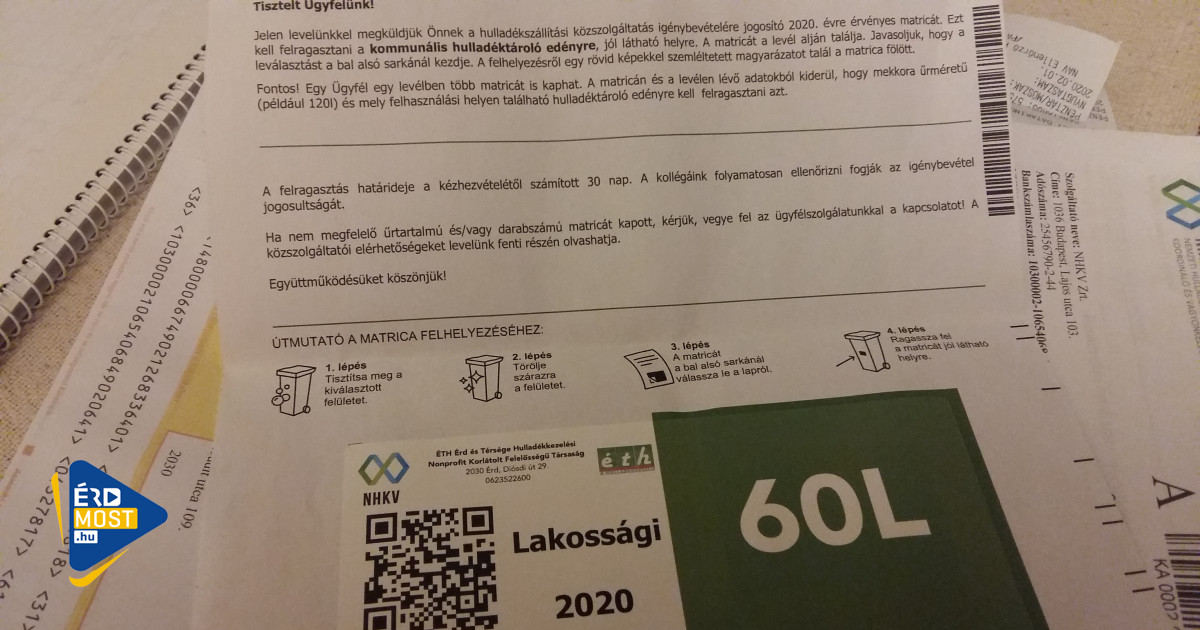 A most postázott matricákat a számla kézhezvételétől számított 30 napon belül kell a szemetesedényre ráragasztani.
