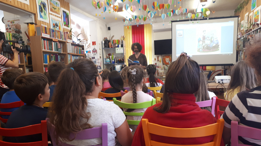 Az író, ahogy azt korábban az Érd FM 101.3 Köztünk marad című műsorában is elárulta, azért (is) kezdett el a gyerekeknek szóló regényeket, meséket írni, mert azt vette észre, hogy itthon tabutémaként kezelik ezekben azokat a jelenségeket, amelyekkel pedig egy gyermek is találkozhat. Mert a nagymama halálát nem tudjuk megakadályozni sajnos azzal sem, ha unos-untalan szivárványokon csúszdázó unikornisokról mesélünk neki. Nekiállt hát feszegetni a határokat, és A kék hajú lány című regényével jött, látott, és győzött. A kórházban játszódó regény az olvasók és a kritikusok kedvence lett. A kőrösis diákok is arra voltak leginkább kíváncsiak, így hát meghallgathatták a könyv első fejezetét az író előadásában, és aztán még játszottak is egy kicsit: beleélhették magukat a főszereplő és annak rokonainak helyzetébe.
