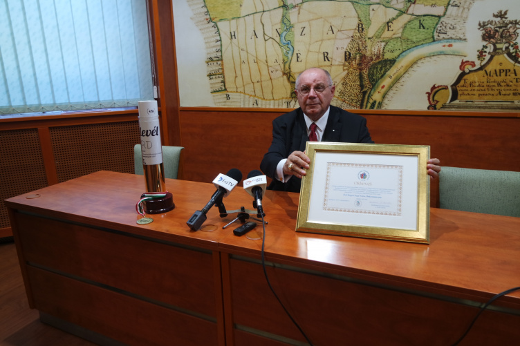 A városvezető még egy kitüntetést mutatott meg a sajtónak: a megyei jogú városok 17. alkalommal megrendezett sporttalálkozóján városunk csapata állhatott a dobogó legfelső fokára.