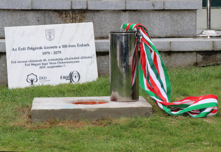 T. Mészáros András polgármester köszöntőjében kiemelte, hogy ha majd a várossá válás 100. évfordulóján az akkor itt élő érdiek kinyitják az időkapszulát, képet kaphatnak a 40 éves város állapotáról, az emberek gondolatairól, kívánságairól. Az időkapszulába a városlakók, a kézislányok és a főépítész üzenetei mellett egy Érdi Újság is került, illetve polaroid képek az ünneplő közönségről.