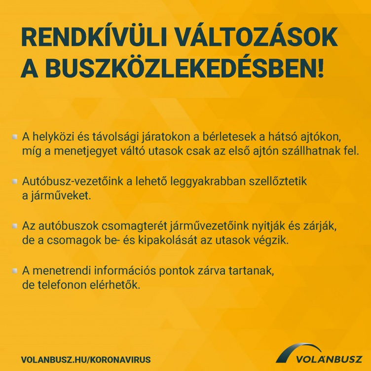 Az esetleges változásokról a Volánbusz Zrt. és a Voláninform Facebook-oldalán, valamint a volanbusz.hu/koronavirus linken számolnak be.