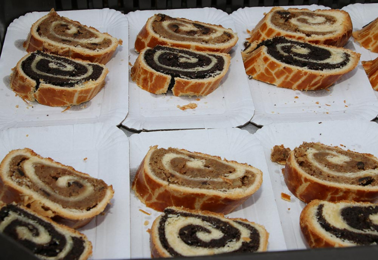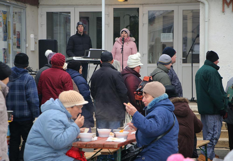 Nem maradhatott el a bejgli sem, amit idén is a Pataki cukrászda szállított, míg a kenyér a Soós pékség jóvoltából került az asztalokra. S ha már asztal, ne feledkezzünk meg arról sem, hogy a padokat, asztalokat az ÉKFI munkatársai állították fel a Szepes Gyula Művelődési Központ előtt, hogy legyen hol elfogyasztani ezt a valóban ünnepi ebédet.
