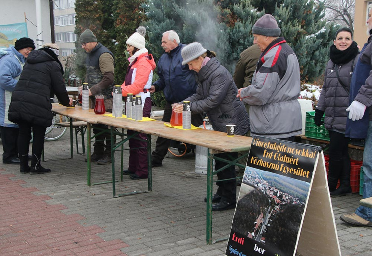 A Pincetulajdonosokkal Érd-Ófaluért Közhasznú Egyesület idén 120 liter forralt borral és ugyanennyi teával készült a vendégségre: a forralt borba érdi vörös, fehér és rozé is került, no meg sok-sok fűszer – tudtuk meg Hudák Mihálytól.