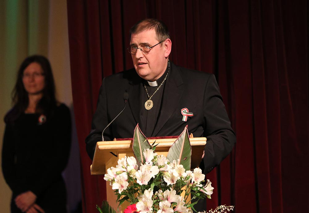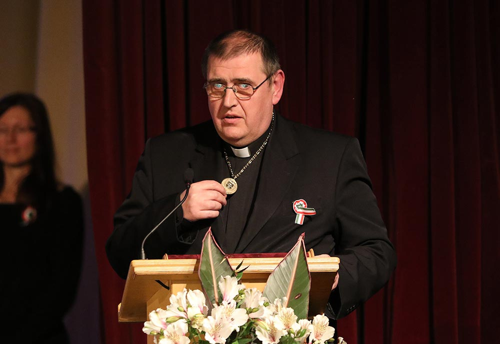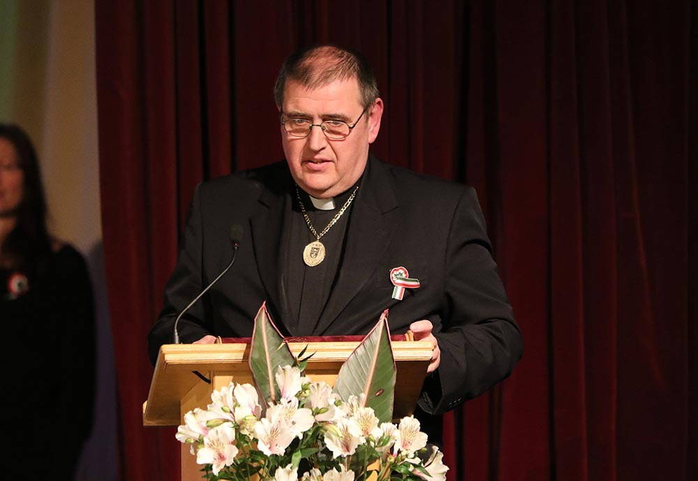 T. Mészáros András polgármester a városi ünnepségen gratulációját fejezte ki Erdélyi-Takács István érdi lelkipásztornak is, aki nemzeti ünnepünk alkalmából nemrégiben Semjén Zsolt miniszterelnök-helyettestől vehette át a Magyar Arany Érdemkereszt kitüntetést a Miniszterelnökségen rendezett ünnepségen.