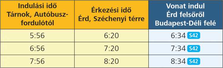 Tétény, Budatétény és Budafok térségének eléréséhez a fenti lehetőségek mellett az S42-es vonatot javasoljuk, amelyre Érd felsőn szállhatnak át