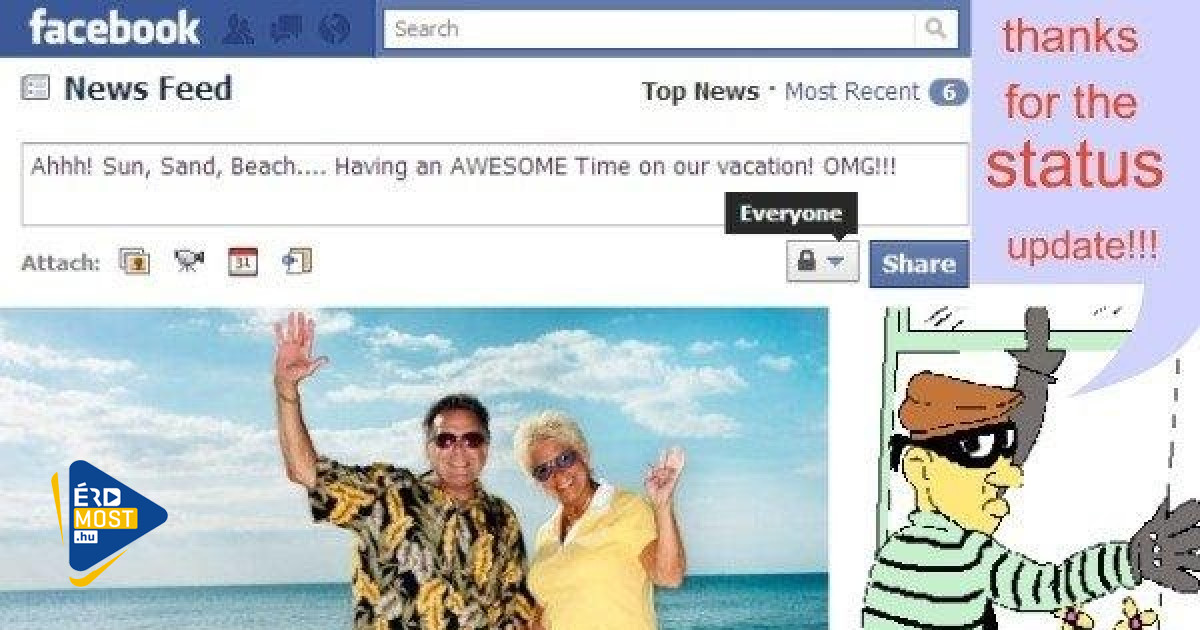 A közösségi oldalakra ne írjuk ki a távozás és az érkezés időpontját! Ha mégis megtesszük legalább az oldalt állítsuk privátra nyilvános helyett!