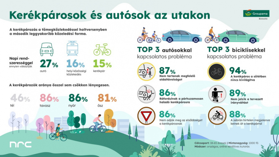 Az autósok a kerékpárosok rossz észlelhetőségét említették a legfőbb gondnak, valamint a váratlan, jelzés nélküli irányváltást, továbbá, hogy a gyalogos átkelőhelyeken a kerékpárosok lendületből áthajtanak.