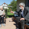Virággal és ajándékcsomaggal köszöntötte a százéves Czirják Nagy Lászlónét Csőzik László polgármester csütörtökön. A járványhelyzet miatt nem lehetett jelen az egész család, de azért nem maradt el az ünneplés: Irma néni pezsgővel koccintott, és a gyertyákat is elfújta a tortán.